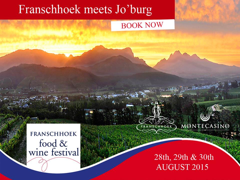 For those of us that don't get the opportunity to travel too often, love wine and food are in for a great treat! The inaugural Franschhoek Food & Wine Festival is set to take place at Montecasino from 28 - 30 August 2015 when the culinary capital of South Africa makes it's way up to Johannesburg.